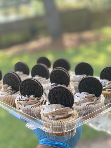 This cupcake is a cupcake filled with delicious Oreo's and topped with a Oreo cream cheese frosting and a Oreo on top for decoration.