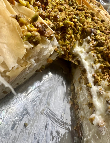 Baklava Moma is a unique twist on the classic Greek dessert. Made with a traditional baklava filling, it is layered on top of a classic cheesecake base for a delectable taste experience. Enjoy a delicious combination of sweetness and crunch that will satisfy any sweet tooth.